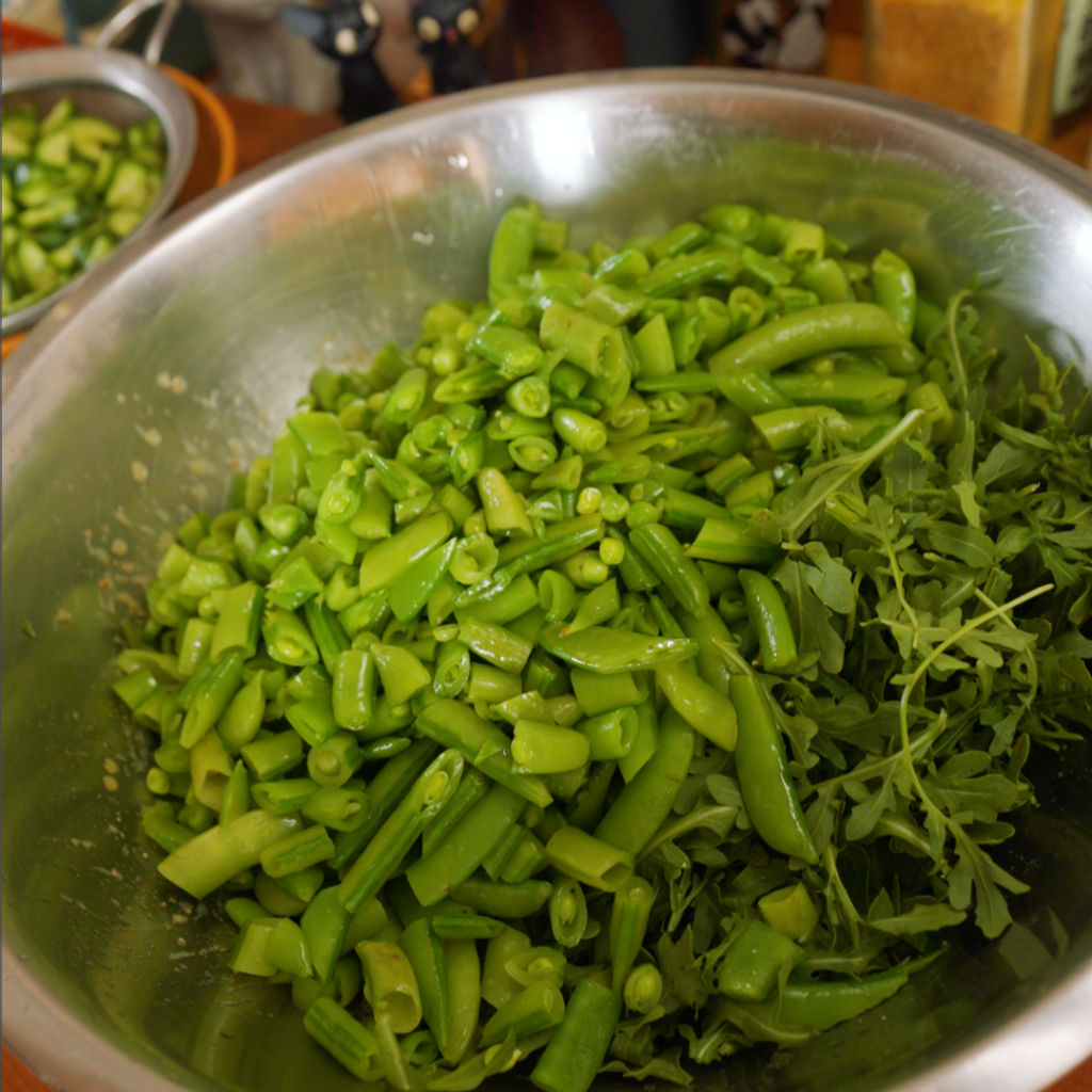 If you’re using mint/parsley/dill (or even just extra arugula), add a handful right at the end. Fresh herbs aren’t just a garnish—they add flavor to the salad. Dried herbs won’t hit the same in a raw salad, so save them for cooked things.