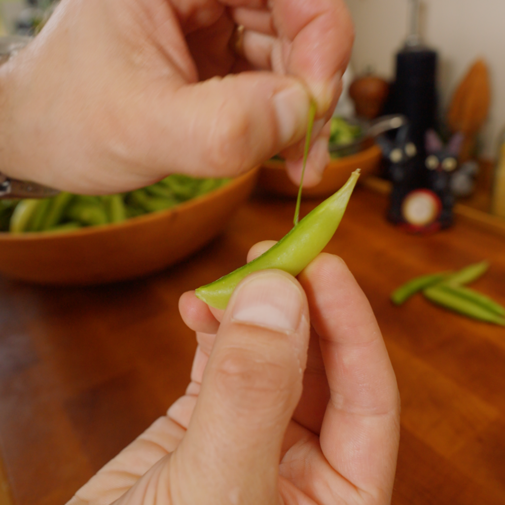 Snap peas need some TLC. So grab your snap peas, put on a podcast and let’s get prepping (cuz this could take a while)!